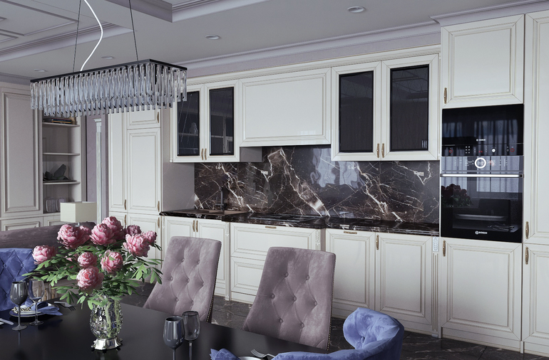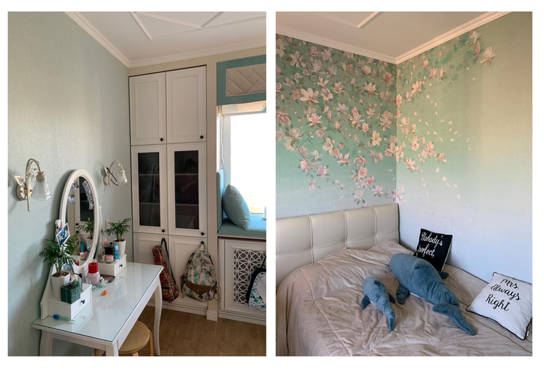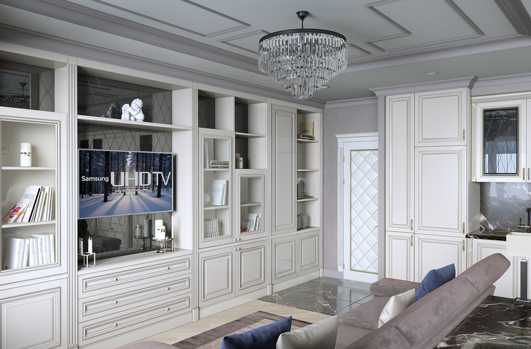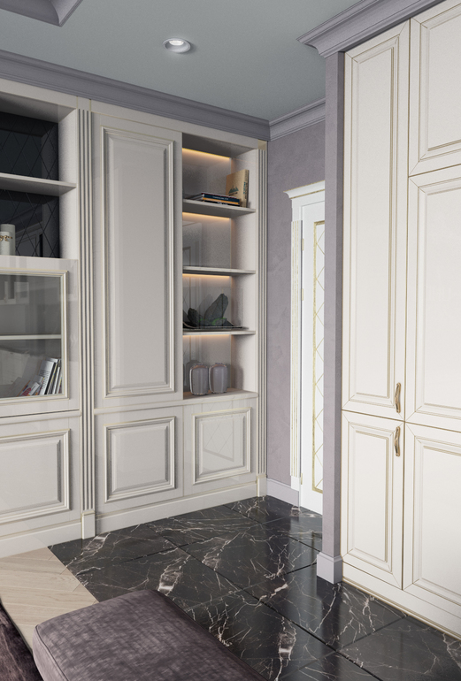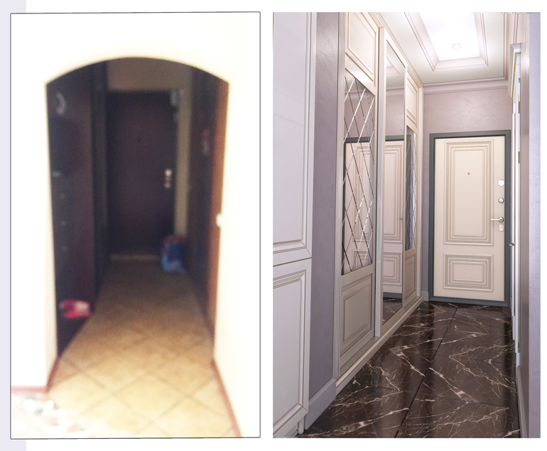 Заказчица грезила о классическом интерьере, чтобы помпезно и торжественно. Конечно, для таких стилей нужны бОльшие площади, но мы попытались :)