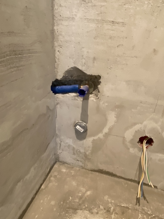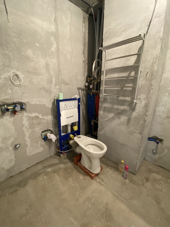 За полотенцесушителем как раз вент короб, а после него ниша в которую поставлю стиралку с суш машиной.