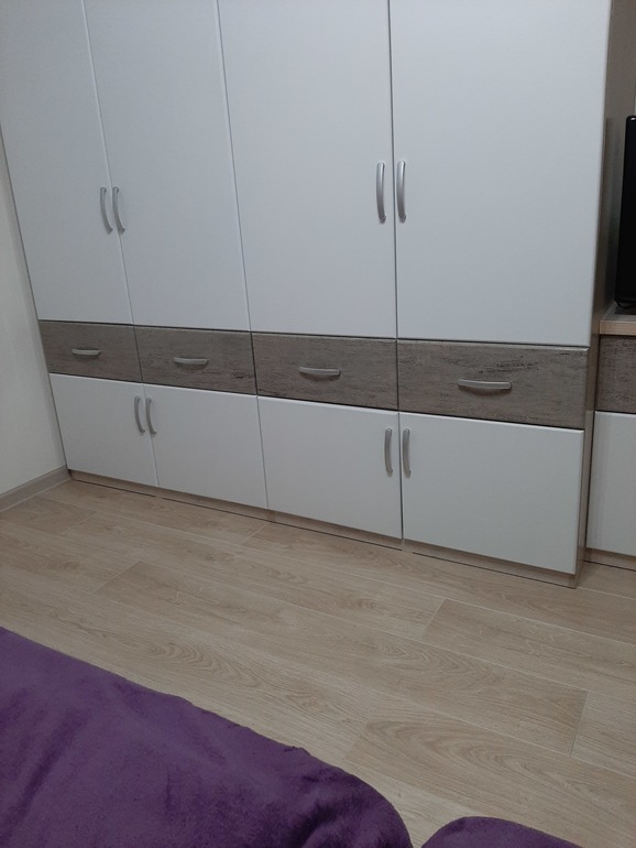 Мы сделали в одной комнате холодный светло серый интерьер с синими шторами и я от него вешаюсь. Переделаем как только будет возможность. А полы у нас везде тёплые, соломенно-желтый ламинат. Отлично сочетается с белым