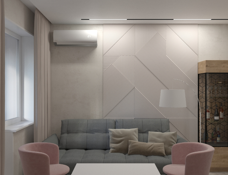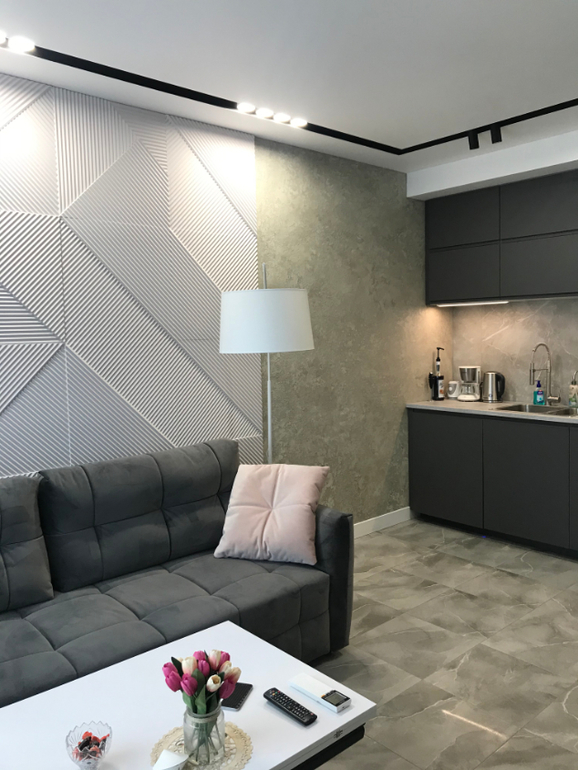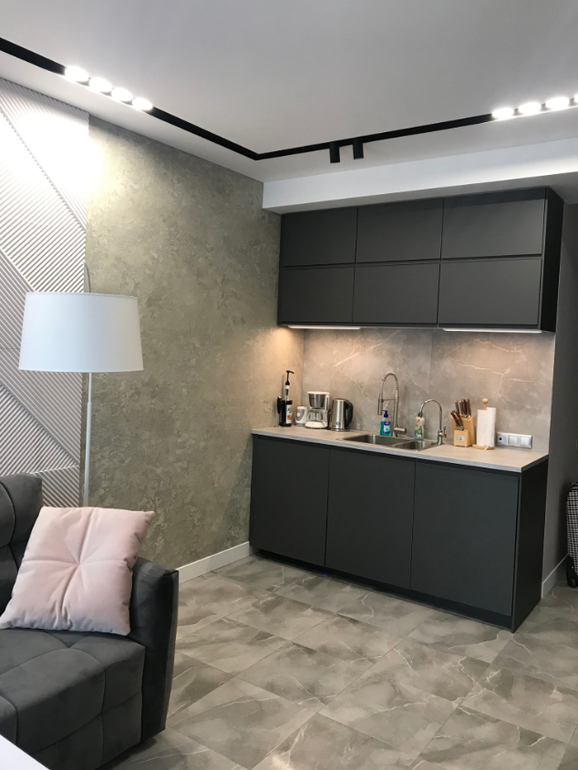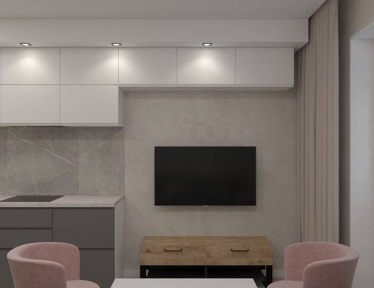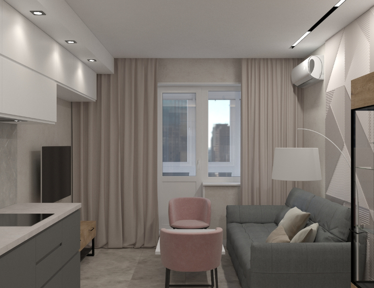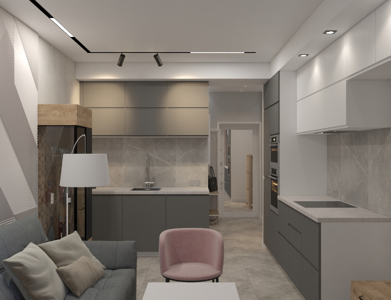 Это проект однокомнатной квартиры. Покажу сегодня только кухню-гостиную.