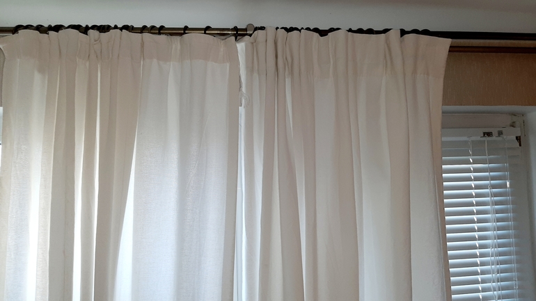 Декор окон. Текстиль. Жалюзи.Посмотрите пожалуйста, как вам кажется лучше? С узкой шторной лентой (слева) или широкой (справа)?