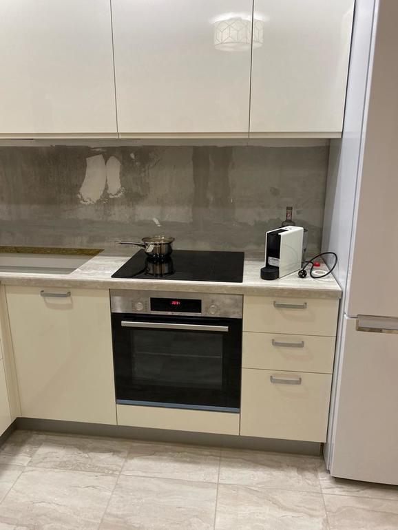 Мы плитку именно после установки кухни клали, чтобы не промахнуться высотой. Ведь стык столешницы с фартуком - самое видное место. Отлично получилось!