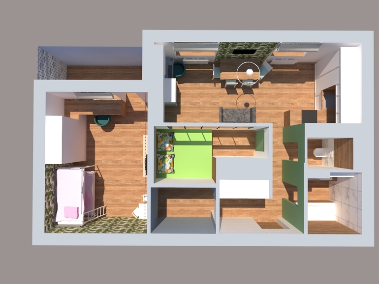 Мы как сами себе дизайнеры и проектировщики взялись за проект сами. У нас классическая двушка, 58 м2. Задача была сделать большую детскую для 2 девочек, кухню-гостиную и обязательно кладовку для инструментов и всяких вещей мужа (он хранит доски и слэбы - делает лофтовую мебель) + велики, самокаты и прочие ватрушки. И чтобы все в рамках закона)