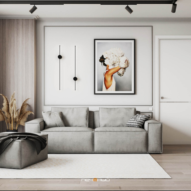 Ассиметрия отлично вписывается в современный ремонт: фото или постер, повешенный таким вот образом в рамке-молдинге добавит интерьеру горсть изюма. То же можно сказать и про светильники, декоративную роль которых часто недооценивают. В любом помещении, а в гостиной особенно, важно продумать несколько различных сценариев освещения. Хорошо, если все светильники будут подобраны в одной стилистике, но при этом несколько отличаться друг от друга. Так, отдельная люстра над обеденным столом просто необходима для создания приятной камерной атмосферы, а точечные потолочные светильники - в большей степени рабочий свет. Хотите неповторимого домашнего уюта? Добавьте нижний свет: бра, торшеры, настольные лампы.