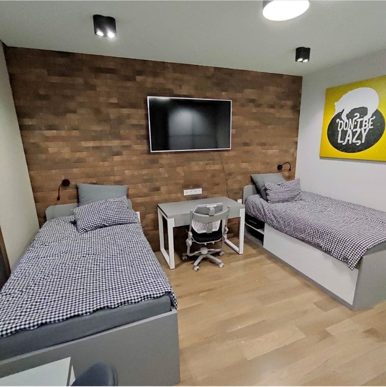Благодарю! Комната слишком мала, чтобы развернуться))) Если столы около окна, то кровати рядом или двухярусная - не наши варианты оба. К сожалению, площадь слишком мала для всех хотелок!