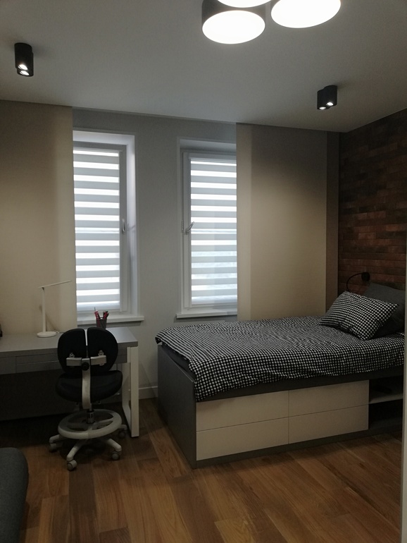 Мне тааак нравится такая категоричность... )))Вам в голову не приходило, что проект делается под конкретные параметры заказчика: площадь помещения, привычки, особенности семьи?Здесь площадь 17м2, нашим детям противопоказано сидеть и делать уроки рядом друг с другом. Было несколько вариантов. Если ставить столы к окну, то только двухярусная кровать или кровати рядом. Оба варианта не наши. С чего вы Вы взяли, что окно закрыто фальш-стеной? Штора слегка сдвинута, она прекрасно раздвигается в случае необходимости. Проект полностью удовлетворил наши запросы.