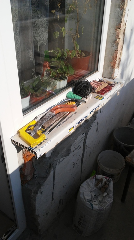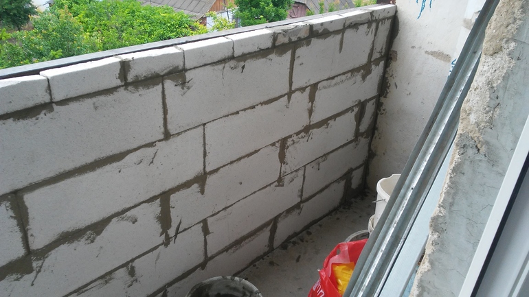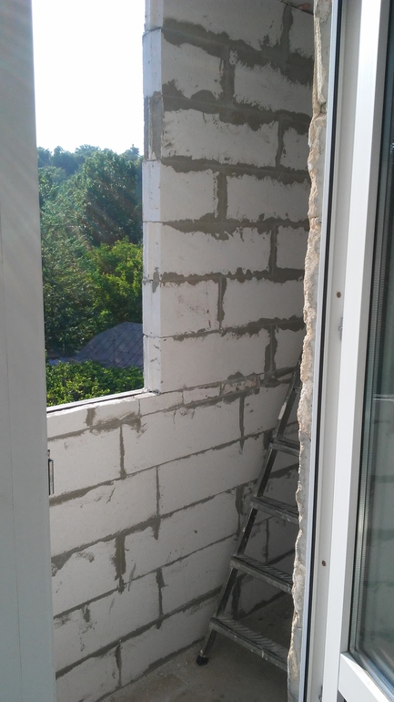 только такая фотка есть, но думаю всё понятно. Начала с лоджии, купила пеноблоки и приступила к кладке.