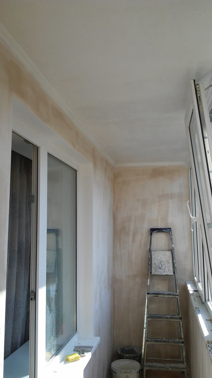 Утеплила стену пенопластом, покрасила парапет, плитка на пол.