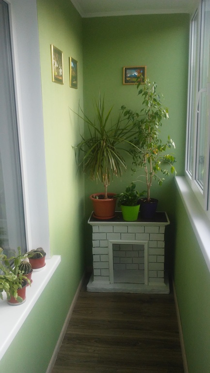 камин тоже самодельный, до нового года живет здесь. Даже в самые сильные холода температура на лоджии ниже 12° не падала. Ну и балкон, осталась краска, поэтому он такой же. Исходник