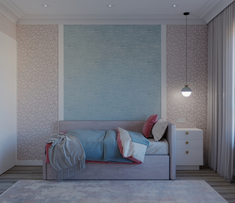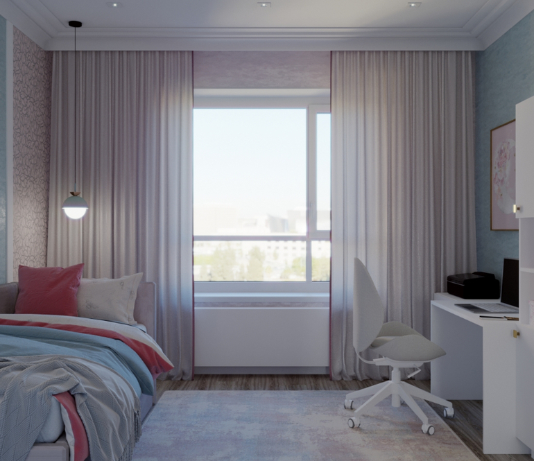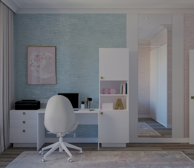 Дочка для своей комнаты пожелала розовый,синий и белый цвет) Этот вариант еще не согласован.