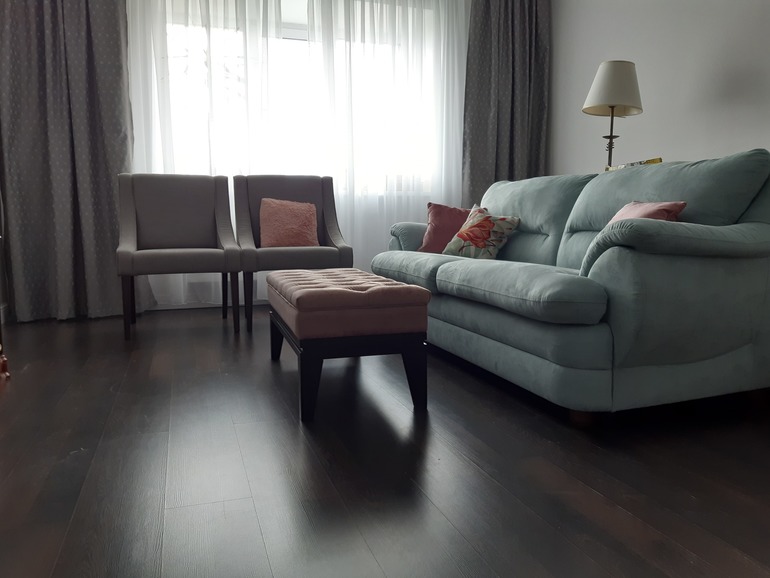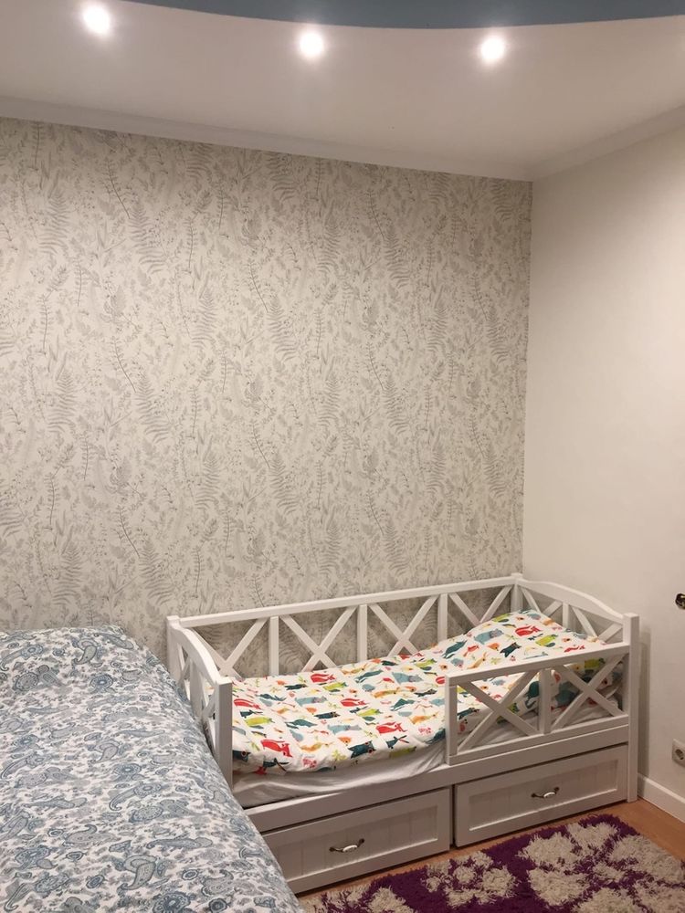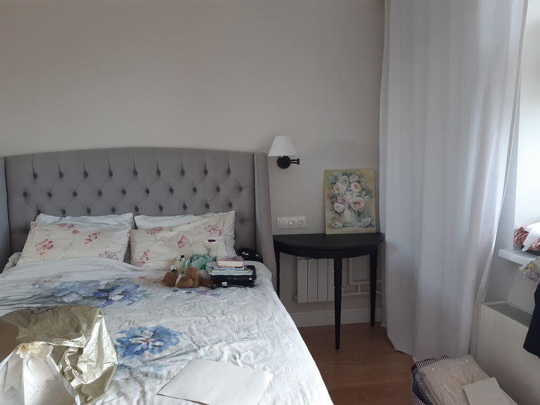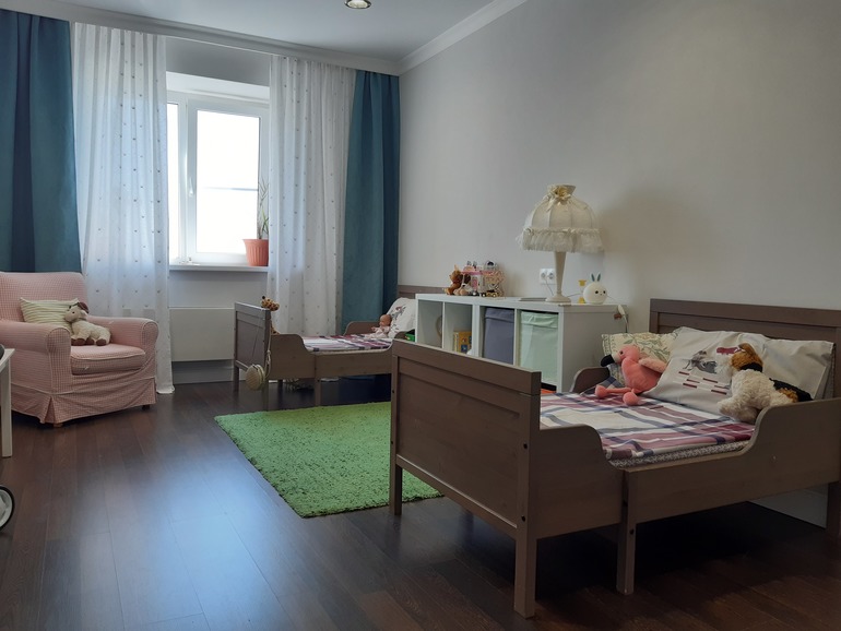Расстановка мебели временная, у дочки в комнате ещё ремонт, нет изголовья у кровати, люстра и потолок остались от предыдущего владельца (люстра - точно колхоз)))) Ковёр тоже временный.