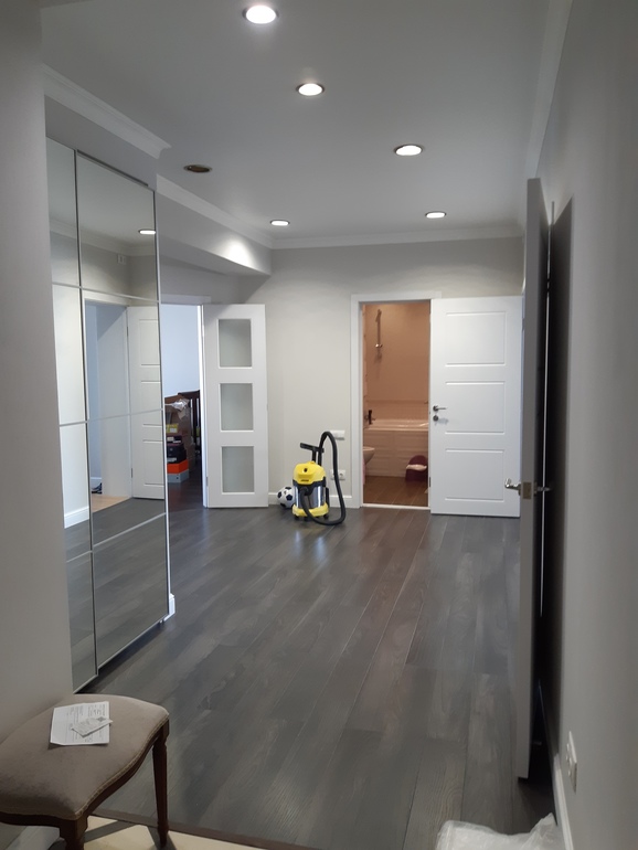 Ремонт не закончен, много, что доделывать, кому-то такие решения покажутся скучными, но мне не хочется ярких красок в том, что трудно сменить. Красок можно добавить текстилем, мебелью, а база,я считаю, должна быть нейтральной.