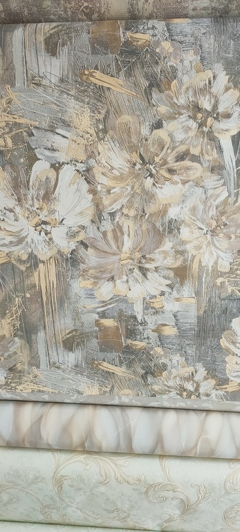 У нас детская в некрупный рисунок. Спальня и коридор обои под покраску выкрашенные в серый светлый. Зал декоравная штукатурка светло зелёная. Кухня там жесть) и штукатурка и кирпичики и фотообои. Но мне прям очень нравится) выбирайте сами в интернете. Какая разница кому там что модно