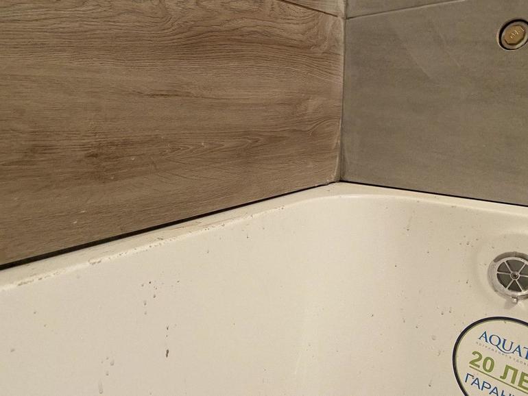 Но плиточнику руки оторвать. Как можно было не поставить ровно плитку на ванну?