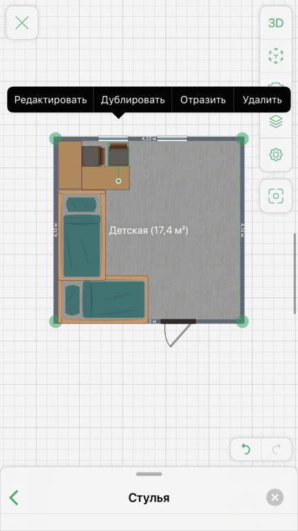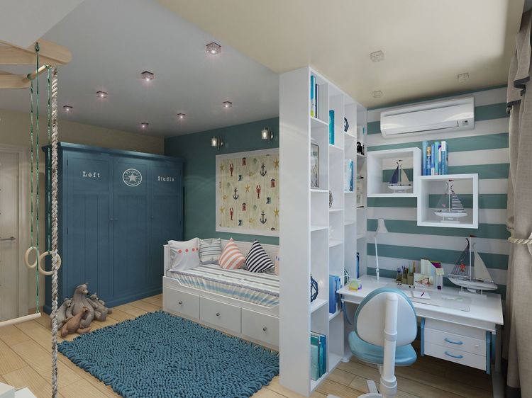 3 спальных места, 2 или 3 рабочих места, уголок уединения, шведская стенка, место для книг, зеркало, гардероб, место на стене для самовыражения, нестандартное расположение мебели.