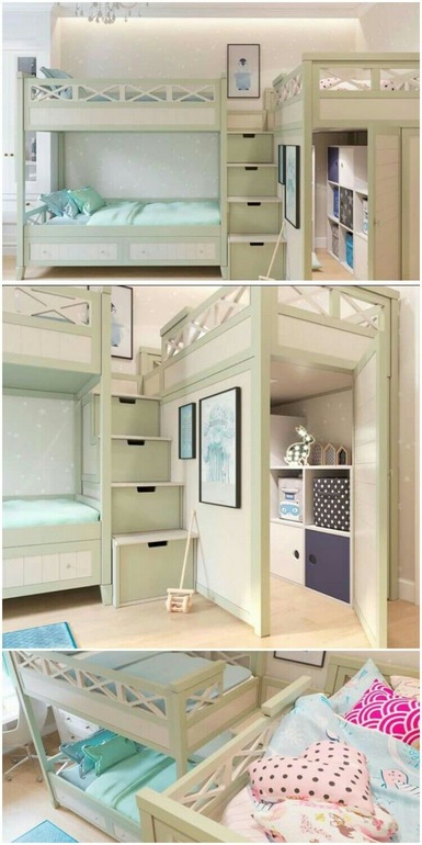 Масштаб мебели примерный, на это не обращаем внимания. Что хочу: хочу сделать детям угловые кровати в углу. Желание девочек- кровати наверху, я очень не люблю эти «верхние этажи» для сна, но желание, есть желание, кроме этого потолки у нас почти 4 метра и есть вентиляция в комнате, поэтому согласилась. Кровати хочу делать такие: