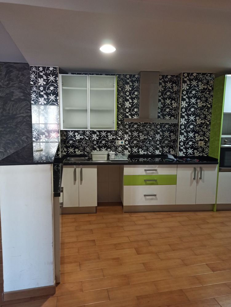 Mata Vharu, не надо жёлтый диван и картину не надо. У вас стена на кухне заменяет картину. Вам либо ламинат менять, либо эту стену. Стену точно