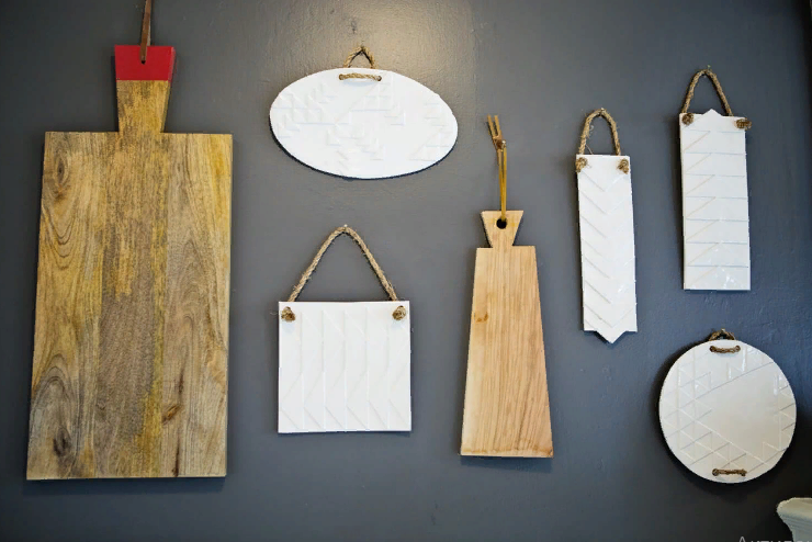 Интерьерные штучки.В одном модном интернет журнале увидела вот такое оформление стены на кухне. Мне понравилась идея. Но вот понять не могу, что это за белые прямоугольники и круги? Это просто из картона, что ли вырезали? Или всё-таки какие-нибудь приблуды для кухни? В журнале на этот счёт никаких объяснений нет. 😕