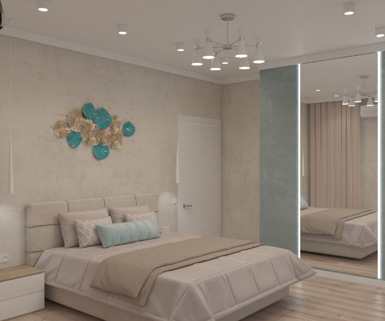 В спальне нужно только допаять кусочек подсветки))) Тумбы, шкаф и комод будут позже.