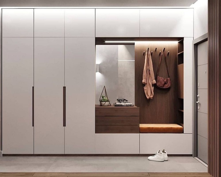 У нас зеркальный в тупике коридора, но там большая площадь и это и гардероб для хранения сезонной одежды и обуви, и кладовка, и даж холодильник там 🙈🙈🙈 (у нас кухня крошечная). А повседневная одежда висит прям возле входной двери и там же обувница. Из моих никто не будет убирать в гардероб повседневку, раскидают так, тк всем всегда некогда...