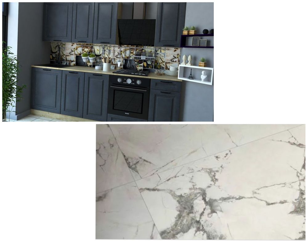 но сыну не нравится рисунок (квартира планируется для него), зато нравится керамогранит под бетон. Еще вариант - постелить ламинат, но боюсь не попасть в цвет столешки и стеновой панели, да и вообще как то много дерева наверное. В итоге всю голову сломала, не могу понять, что будет смотреться более выигрышно.