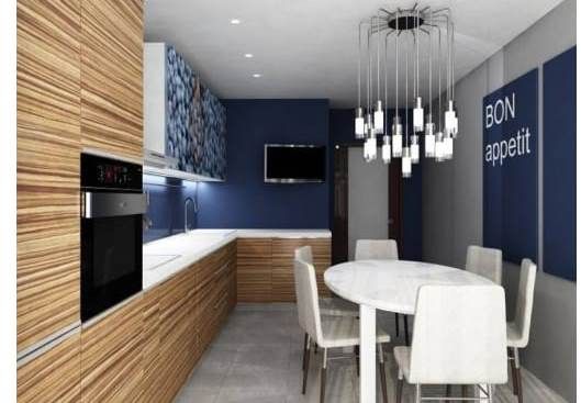 Мне нравится идея темносиних штор, только добавить ещё хотя бы одно цветовое пятно такое : картина абстрактная , в которой будет этот оттенок , либо букет цветов и т. д