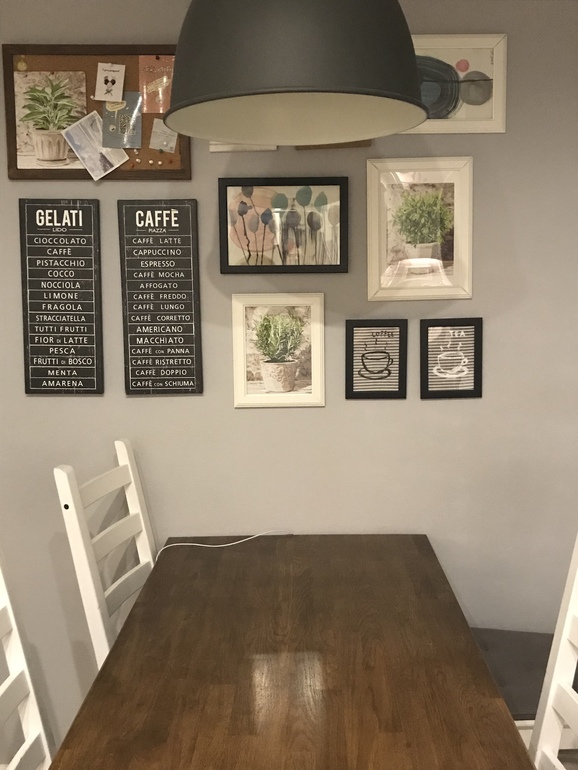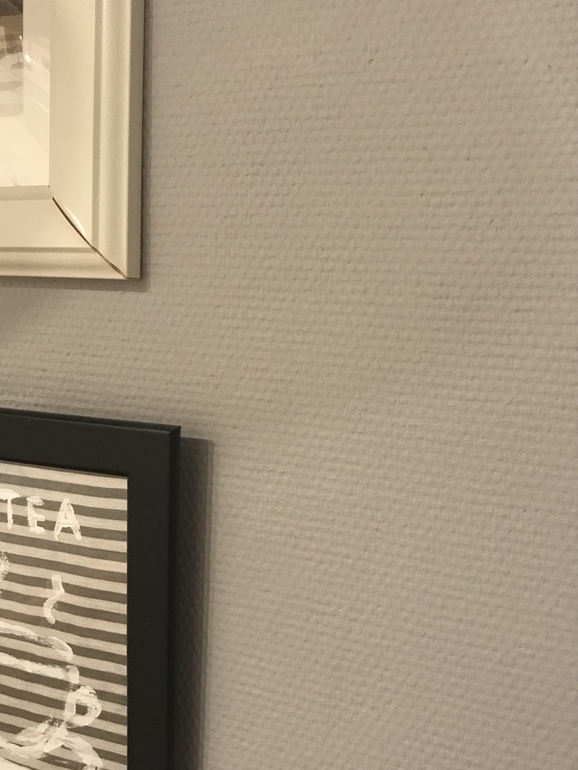 Один из важных моментов - даже если со стеной что-то случится, очень легко восстановить покрытие. Муж нёс стремянку, зацепил стену и процарапал довольно глубоко. Я зашпаклевала царапину, провела по этому месту пару раз валиком (краску купила с небольшим запасом) и стена снова как новая. За четыре года стена совсем не изменилась, хотя по ней шоркают ( не подобрала нормального слова) стульями, дети возят машинки, хватают руками и т.д.