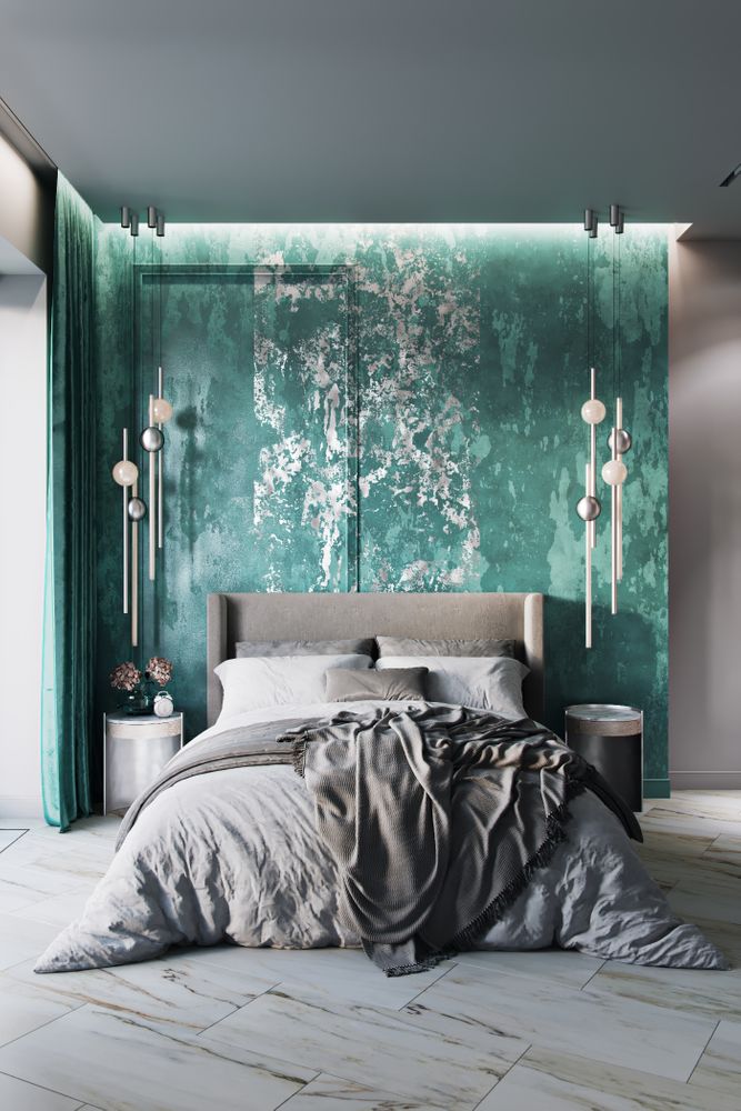 Честно говоря, пока не увидела кровать, подумала, что это обшарпанная стена какой-нибудь советской больницы, или убитого холла хрущевки. Наверное, это стильно, кому-то нравится, раз заказали. Всё понравилось, кроме стены.