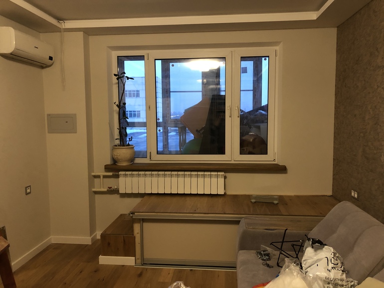 А вы подиум установили, чтоб на балкон ходить? Как его будете использовать? У нас в квартире тоже есть подиум, пока он как игровая, но у меня уже куча вариантов и самый прикольный пока сделать потом там спальное место.