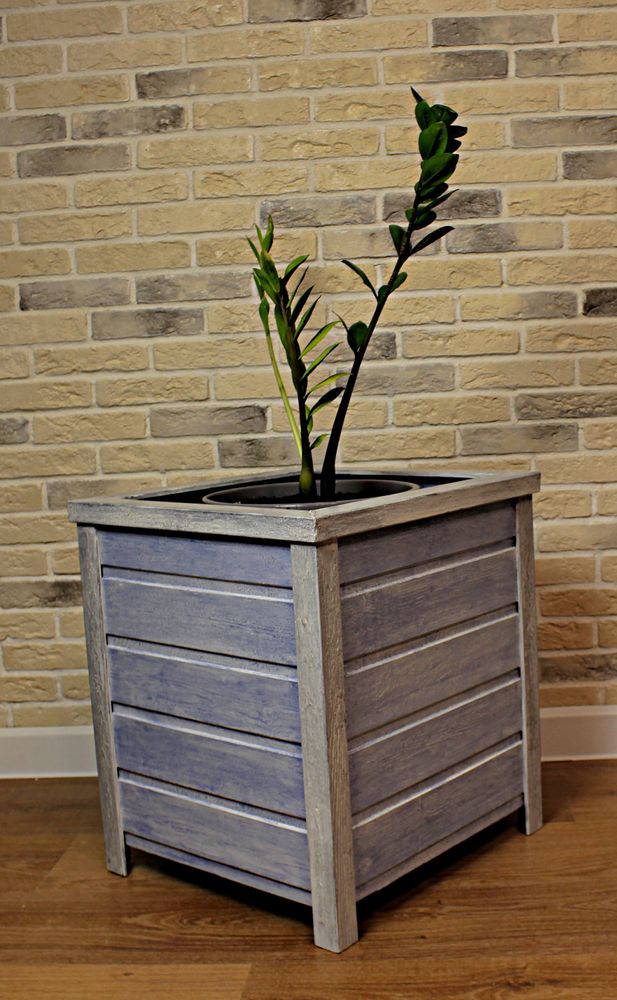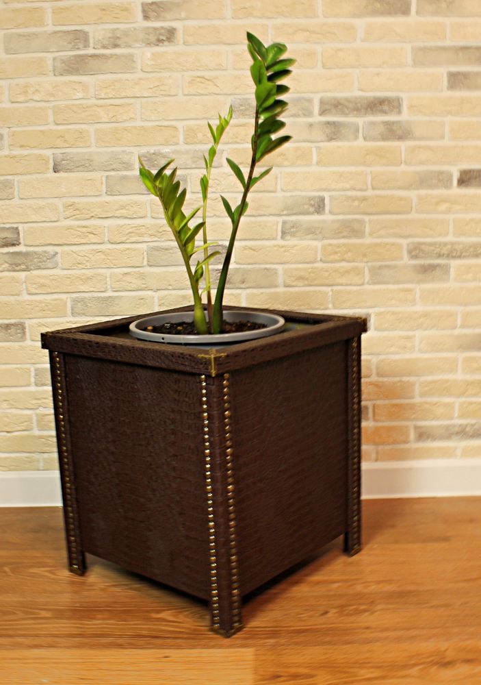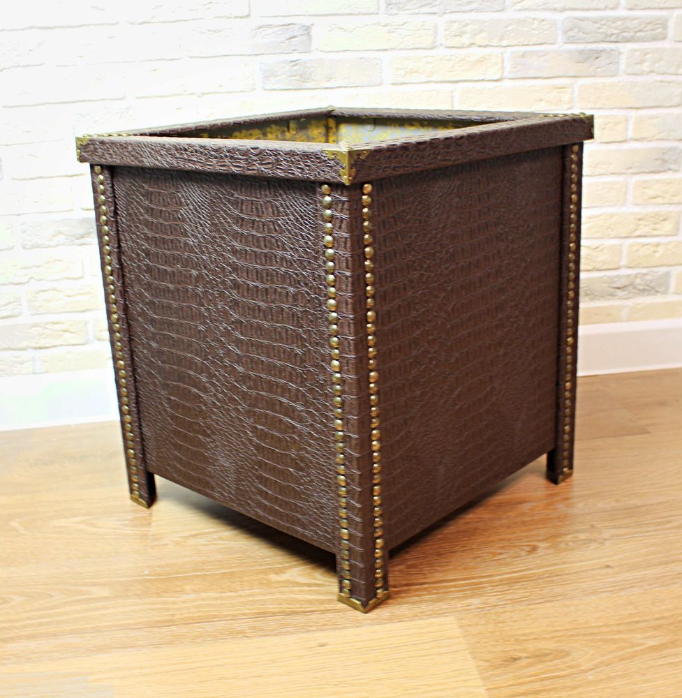 Кашпо напольное из экокожи под крокодила шоколадного оттенка.
