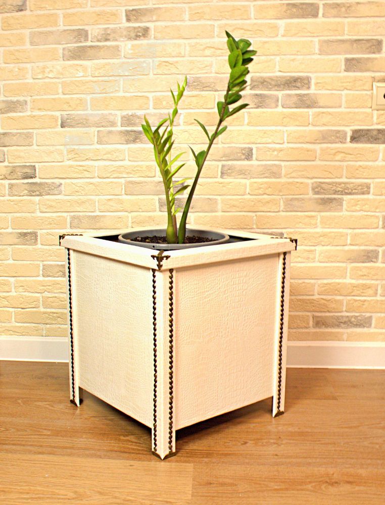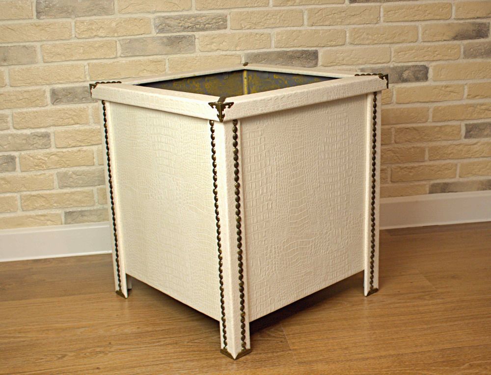 Кашпо напольное из белой перламутровой экокожи под крокодила.