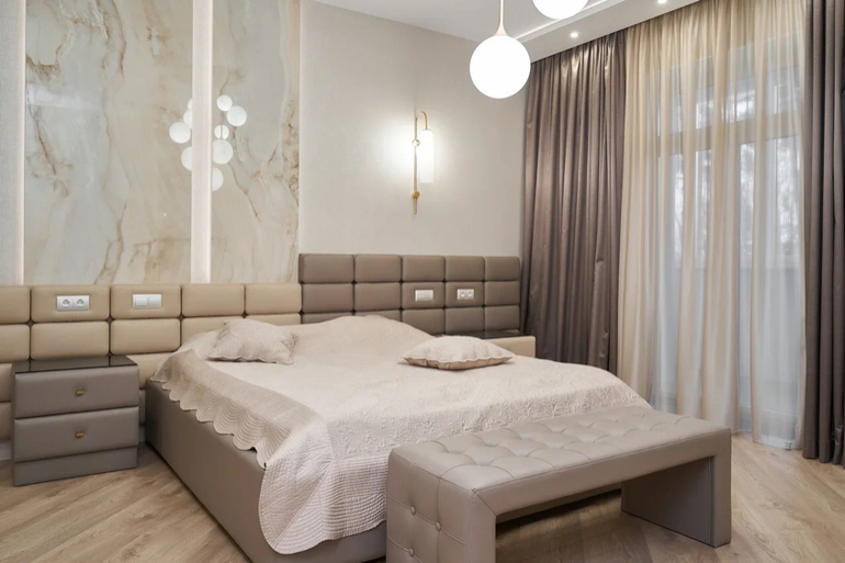Очень-очень скучная квартира. Мрамор этот как в лобби офисного центра. Жуть