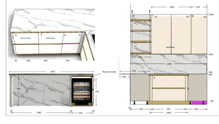 У меня в этом месте должна была быть просто стена, а варочная и мойка на этом полуострове. А сзади просто пеналы без фартука.