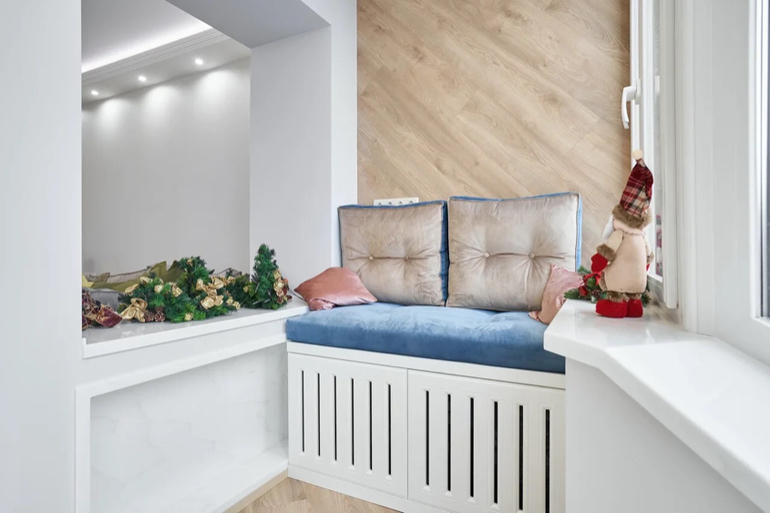 Скажу честно, я сама не сторонник открытых полок. Было очень много вариантов их закрыть хотя бы частично. Но на них настояли заказчики.