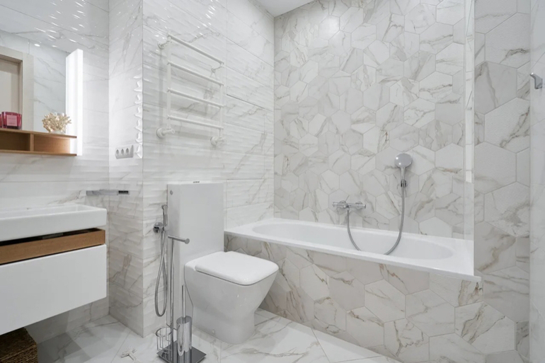 У меня от мраморной плитки аж в глаза рябит (а она ещё и разной формы и размеров
