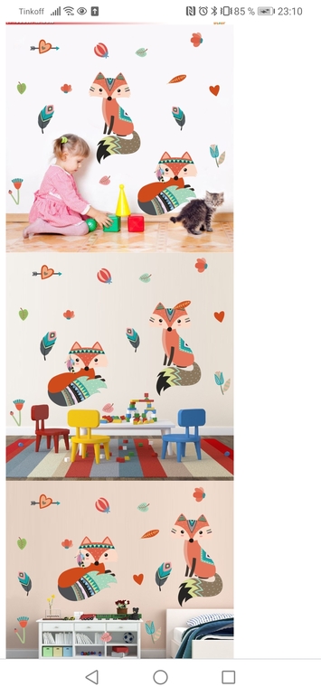 Стены возле спальных мест покрасить в оттенок голубого из рисунка (на картинке в примере на хвостике лисы), и рабочий стол наверняка же стоит где-то рядом с окном - подобрать портьеры зелёного оттенка (а на лето их можно менять на жёлтый)