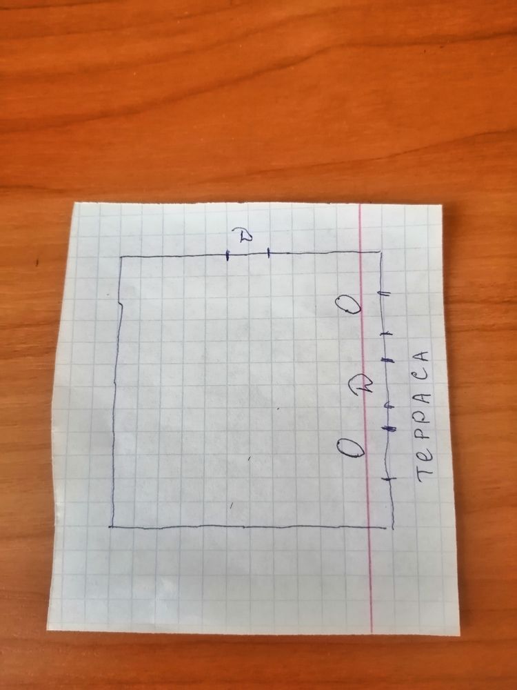 Постройка дома, этапы.Летом предстоит строительство дома, дом будет 6*6, дачный дом. И будет 2этаж. На первом этаже перегородок не будет (только для туалета и душевой). Нужно на первом этаже расположить кухонный гарнитур, обеденное место, получается прихожку, вещи нужно же будет верхние вешать куда-то... Будет 2 выхода, еще хочу терассу... И тут мы вроде нарисовали, но блин, выход получается на другой стороне... И я в ступоре...