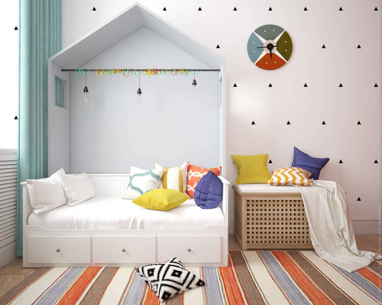 Дочке почти 6, вот вот планируем переезд, ремонт от застройщика, переделывать ничего не будем, обои под покраску. Комната небольшая 2,96х3,96. Вроде мебель расставили, собираемся заказать диван, начали думать над тем, в какой цвет покрасить стены, ну и собственно какую из стен делать акцентной. Справа кровать, ещё не уверены, но думаем сделать что-то типа такого, только других тонов