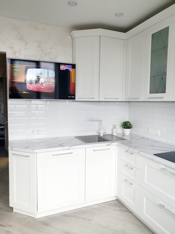 Elena, да сушка в первом верхнем распашном ящике, мы планируем на 80 и 28 см отделить по вертикали под отдельные полки под бокалы и пр. Наполнение нижних шкафов продумали, технику купили. Остались вопросы только к внешнему виду. Хочется симметрии, но очень уж громоздко с ней получается.