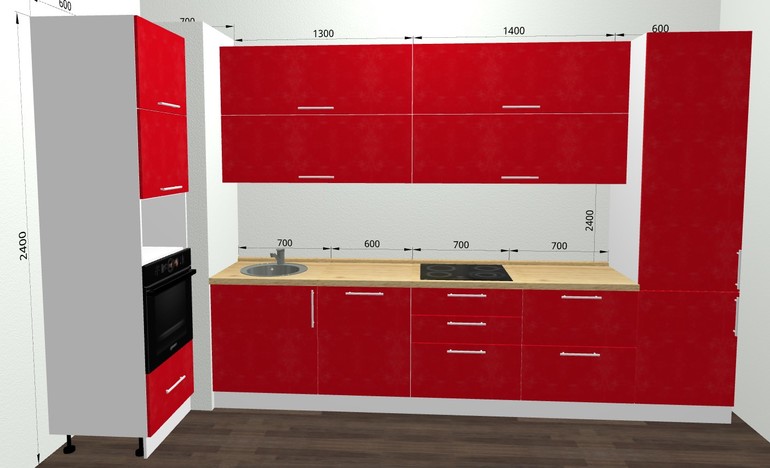 Так вот, низ (слева направо): 60 распашной под мойкой, 60 посудомойка?, 30, 60 и 60. И плиту бы я поставила над предпоследним 60.