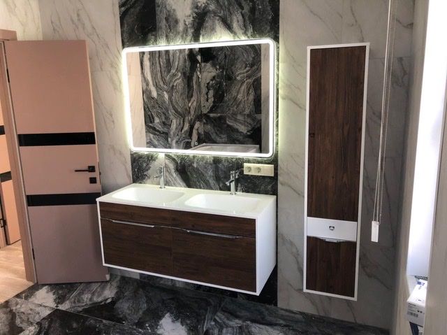 У нас зеркало шириной 60 см. Подсветка только в верху зеркала, чисто декоративная, делать макияж темновато. В магазине меня убеждали, что будет достаточно светло для макияжа. Сейчас бы взяла обычное зеркало