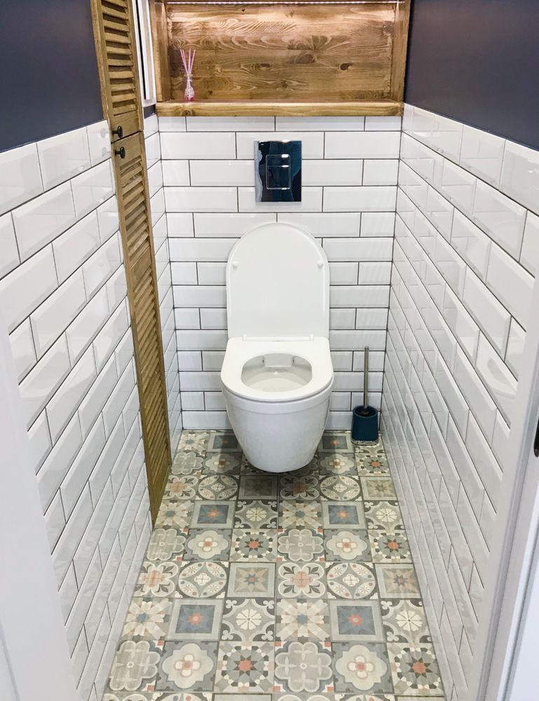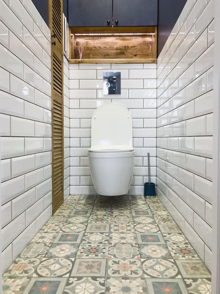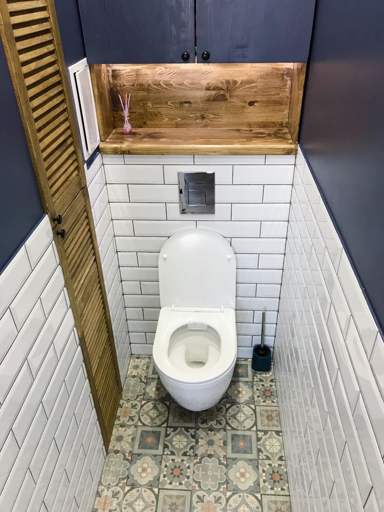 а мне нравится! мне особенно нравится насыщенно синий с деревом! мне нравится сочетания несочетанемых! получилось необычно у вас в обычном туалете!