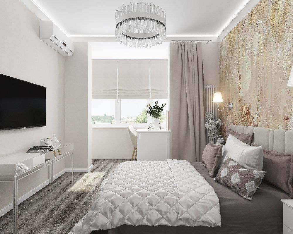 В спальне мы совместили балкон с комнатой