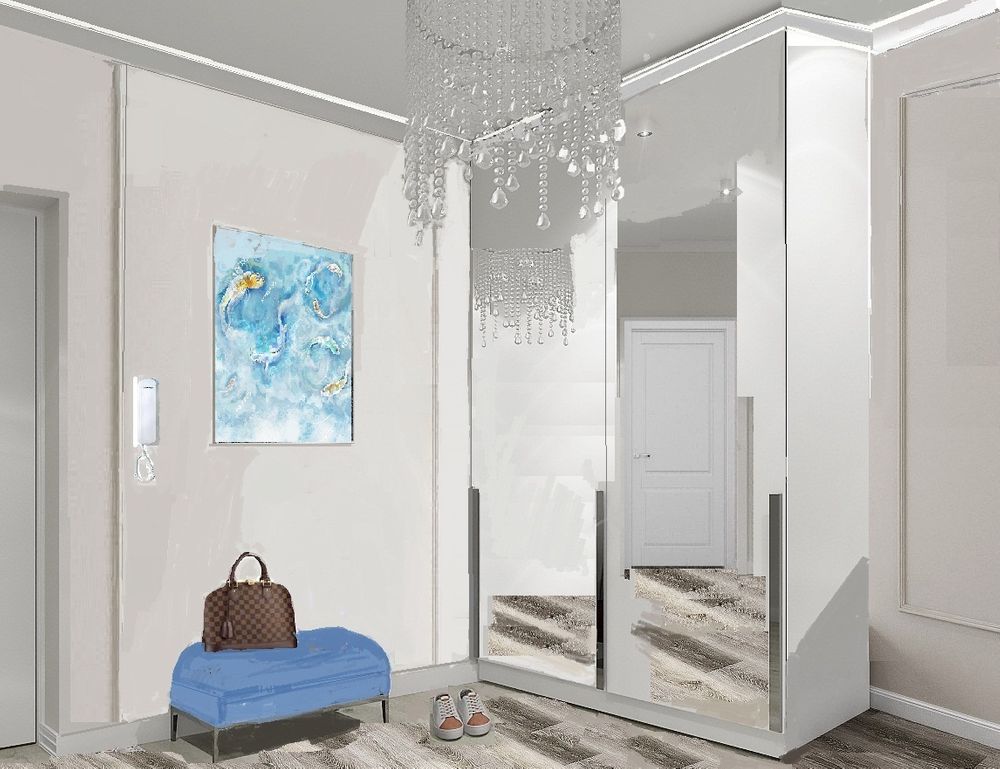 Заказчик все хотел в холодных тонах, жене же хотелось теплого, мы следовали этой идее в разумных пределах)