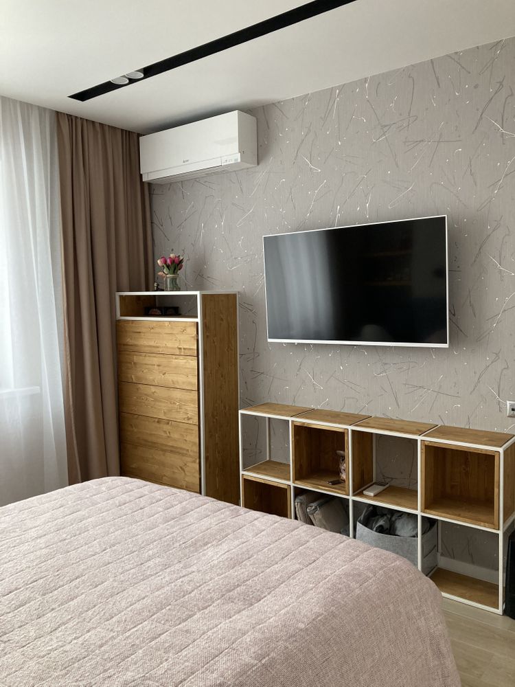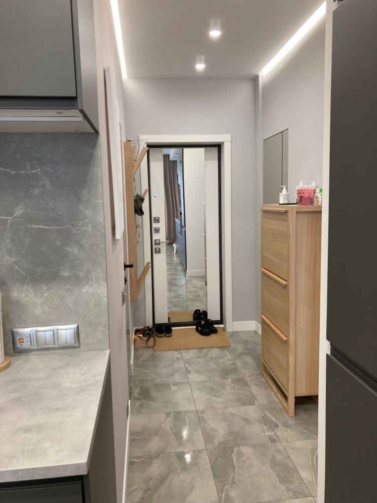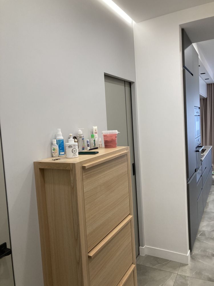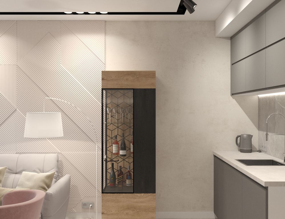 Проект квартиры в Санкт-Петербурге был выполнен в 2019 году для молодой женщины. Тумбу для гостиной и шкаф витрину привезли только после Нового года. Фотографии получила сегодня)