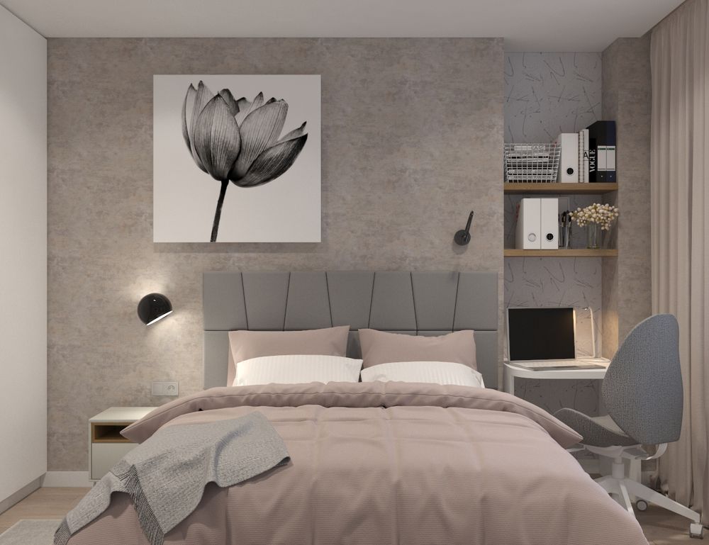 В спальне разместила небольшое рабочее место. Ниша уже была раннее в квартире.