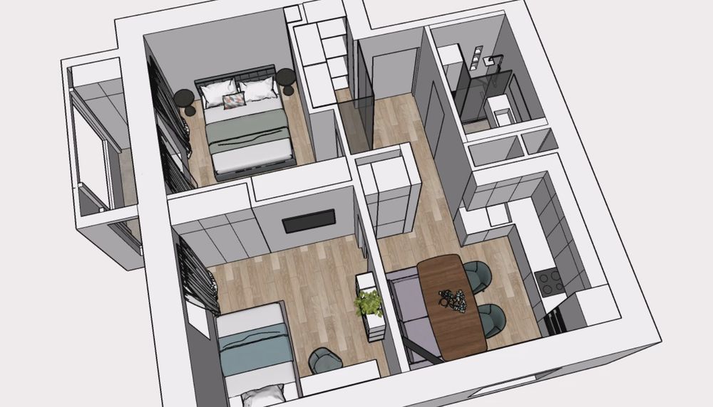 Так же для заказчиков я делаю такие 3d макеты перед визуализацией чтобы они смогли оценить квартиру в объеме , по ссылке есть видео .