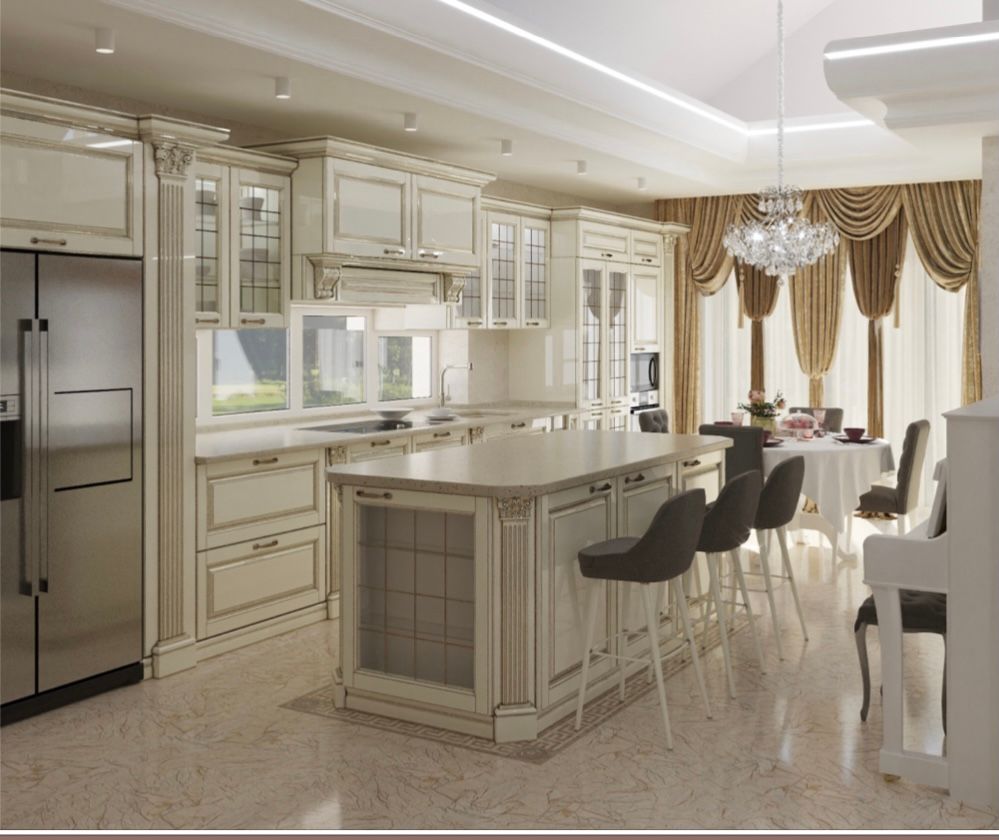 Дано: кухня в классическом стиле, столешница - чёрный с золотом гранит. Примерно такая