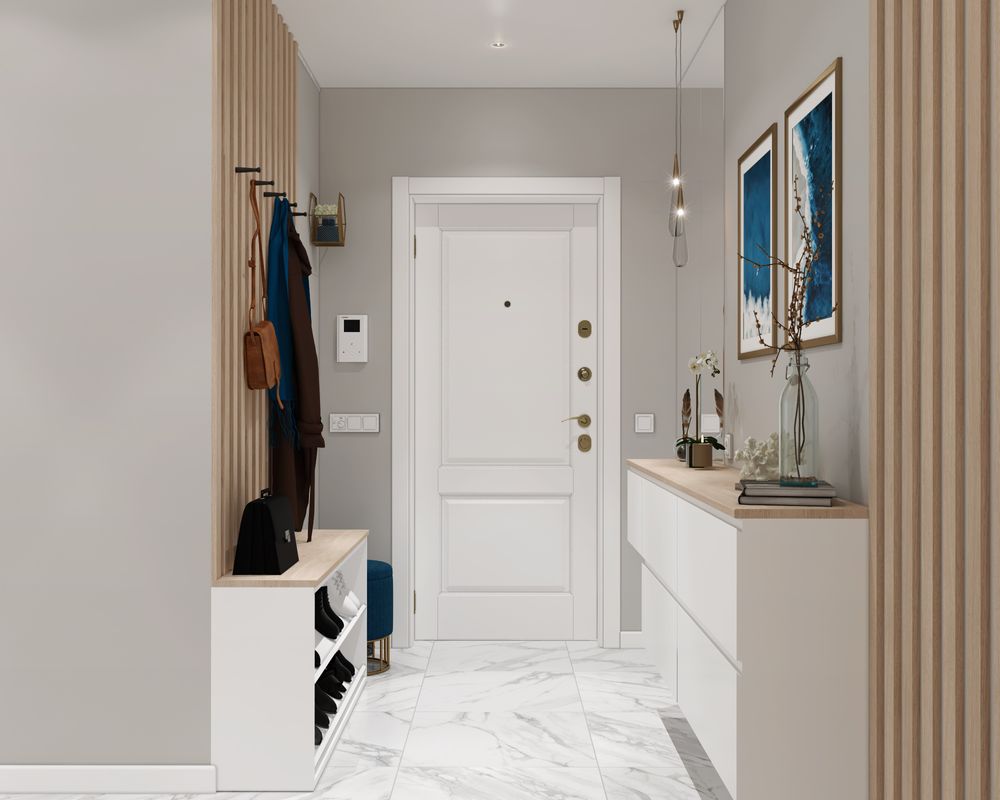 Авторские проекты дизайнеров.(Посты не по теме будут удаляться!)Сегодня хочу показать проект двухкомнатной квартиры для молодой семейной пары, площадью 70 кв.м. В нейтральном светлом интерьере ярко играют цветные акценты.