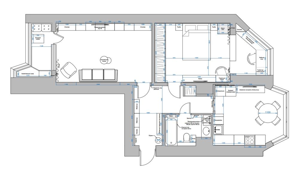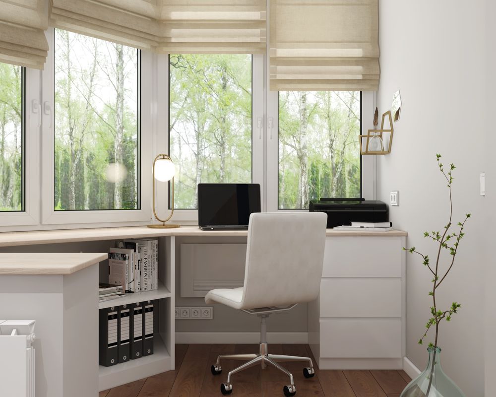 Эркерный балкон утеплили и присоединили к комнате. Там удалось расположить большое и удобное рабочее место.